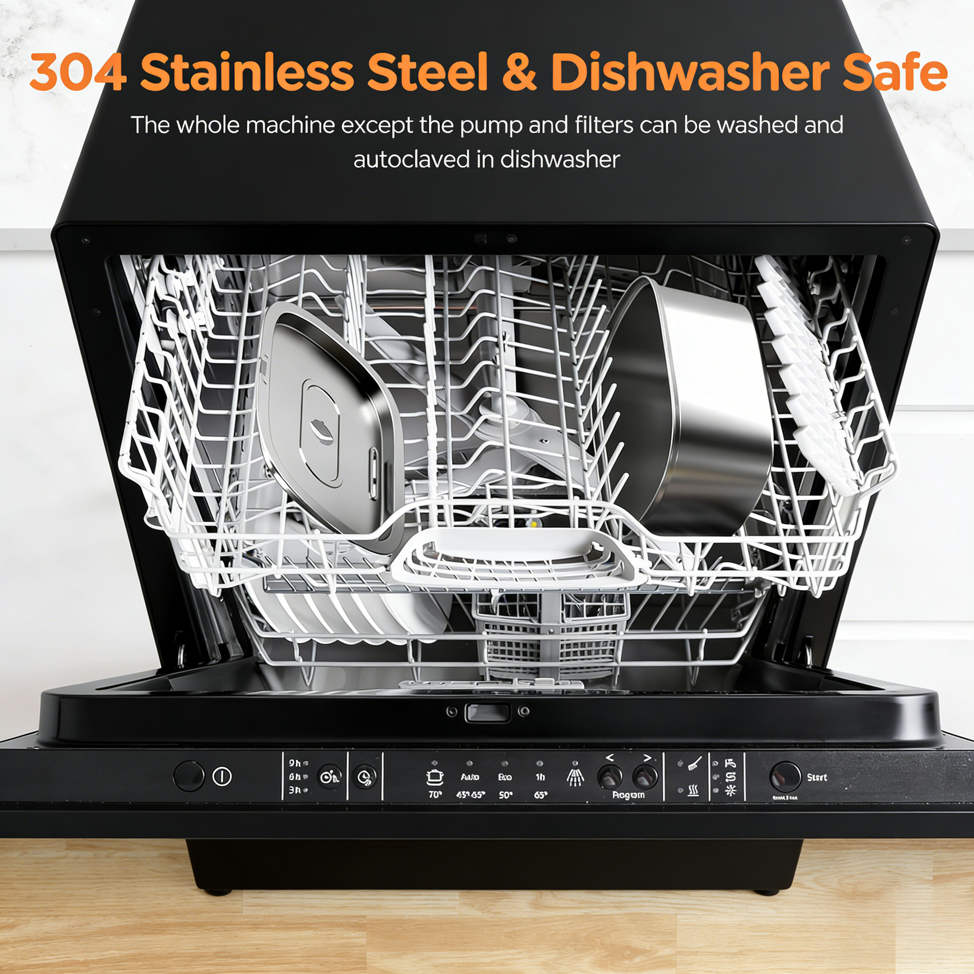 - Easy Cleaning: 304 stainless steel parts (except pump/filters) are dishwasher-safe