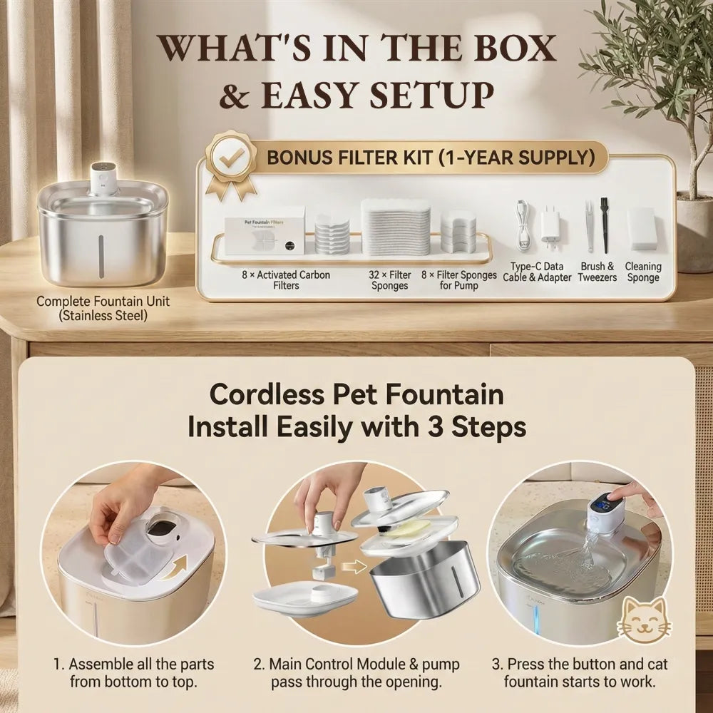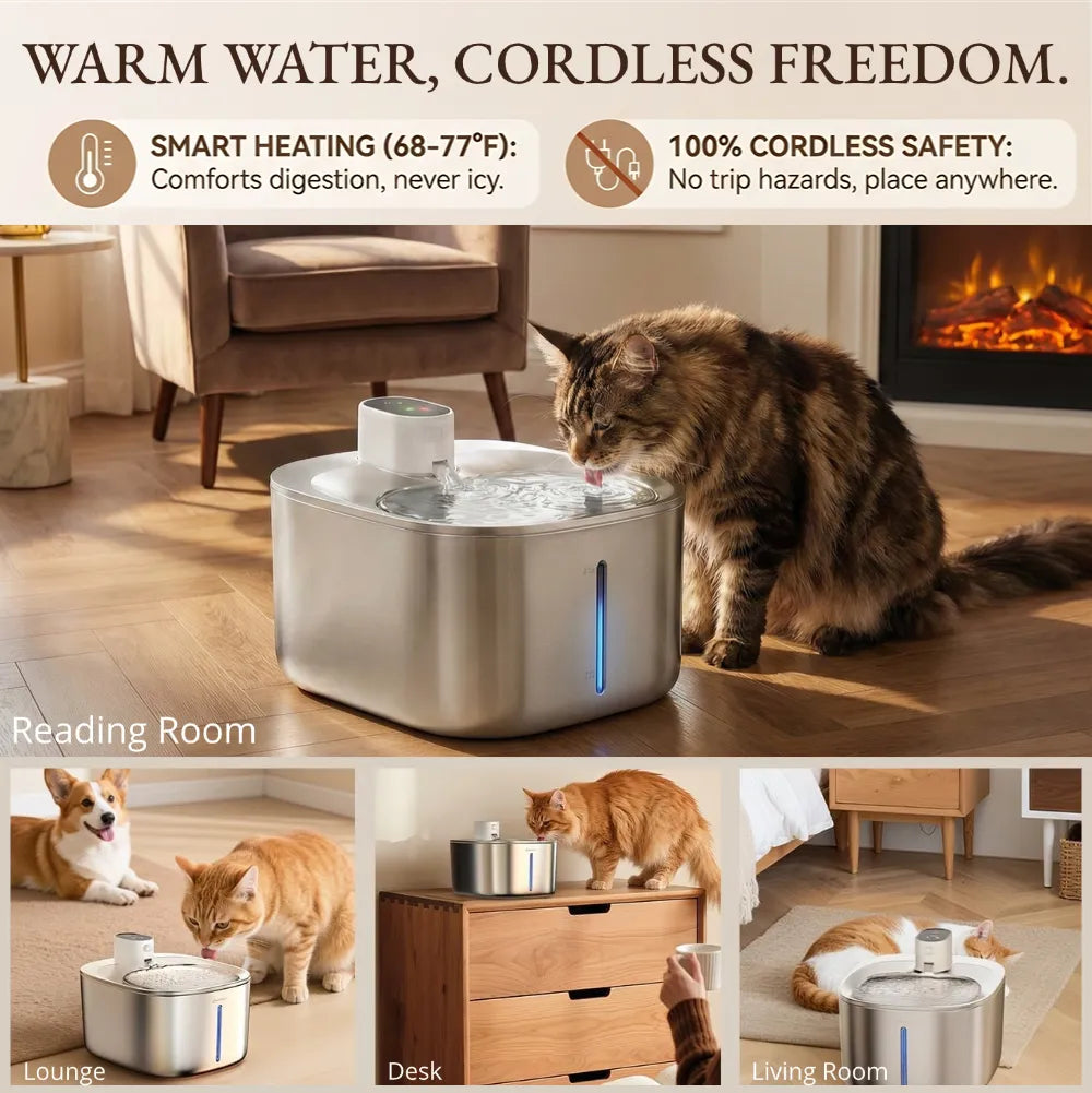 Wireless Pet Fountain – Pure, Filtered & Perfectly Warm
